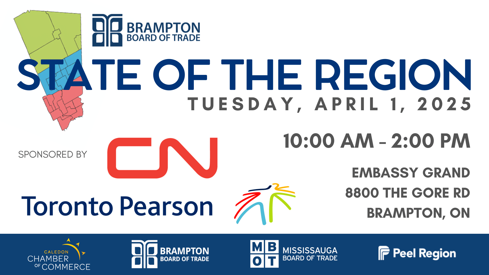 This premier event, presented in collaboration with our partners at the Mississauga Board of Trade and Caledon Chamber of Commerce offers invaluable insights into the economic outlook, strategic investments, and policy priorities that impact businesses in Peel Region and beyond. Attendees will hear directly from government officials, industry experts, and regional leaders, providing a comprehensive overview of the opportunities and challenges ahead.