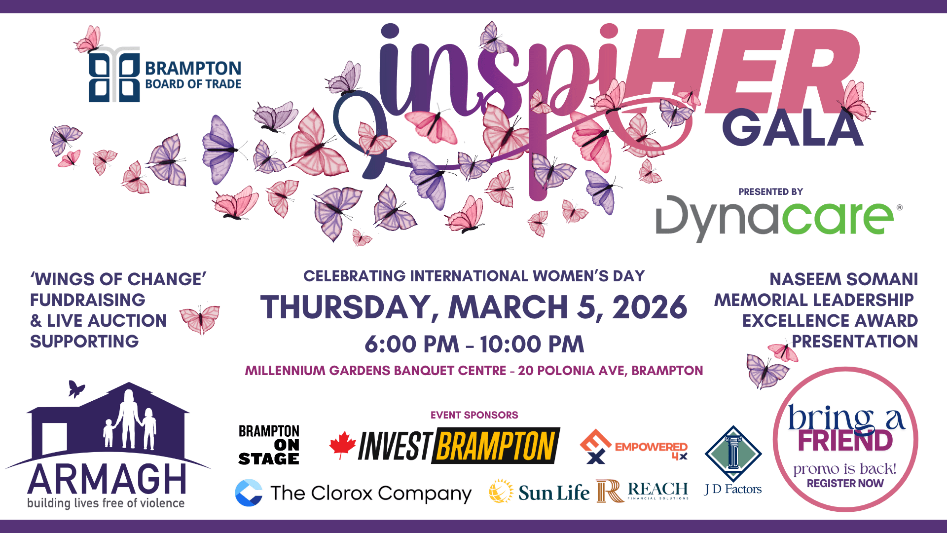 Join Brampton’s business and community leaders for the 2026 inspiHER Gala, a premier celebration honouring International Women’s Day and the remarkable achievements of women. This highly anticipated annual event brings together executives, entrepreneurs, changemakers, artists, and advocates to celebrate leadership, creativity, and progress toward gender equity.
